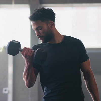 man curling dumbbell