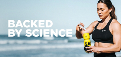 Black banner with white text showing a drink can and stick packs splashing in water Black banner with white text showing a drink can and stick packs splashing in water