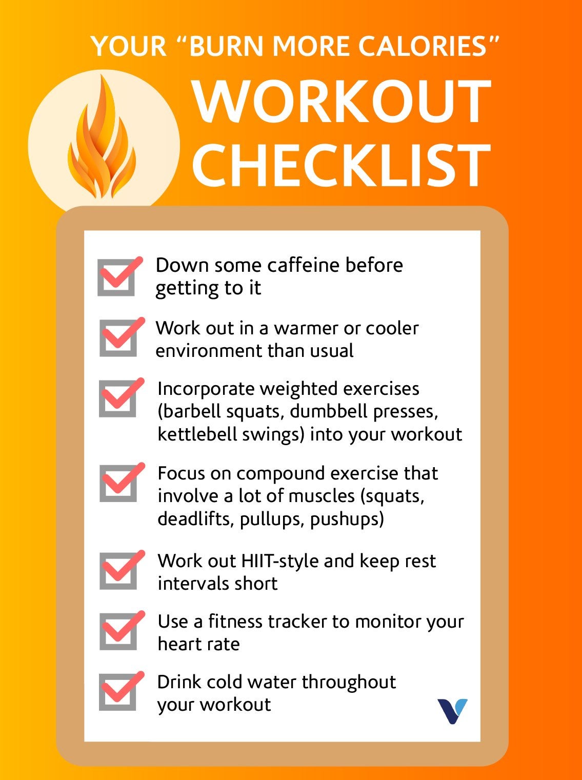 Pin this checklist to maximize your burn every time you hit the gym:
