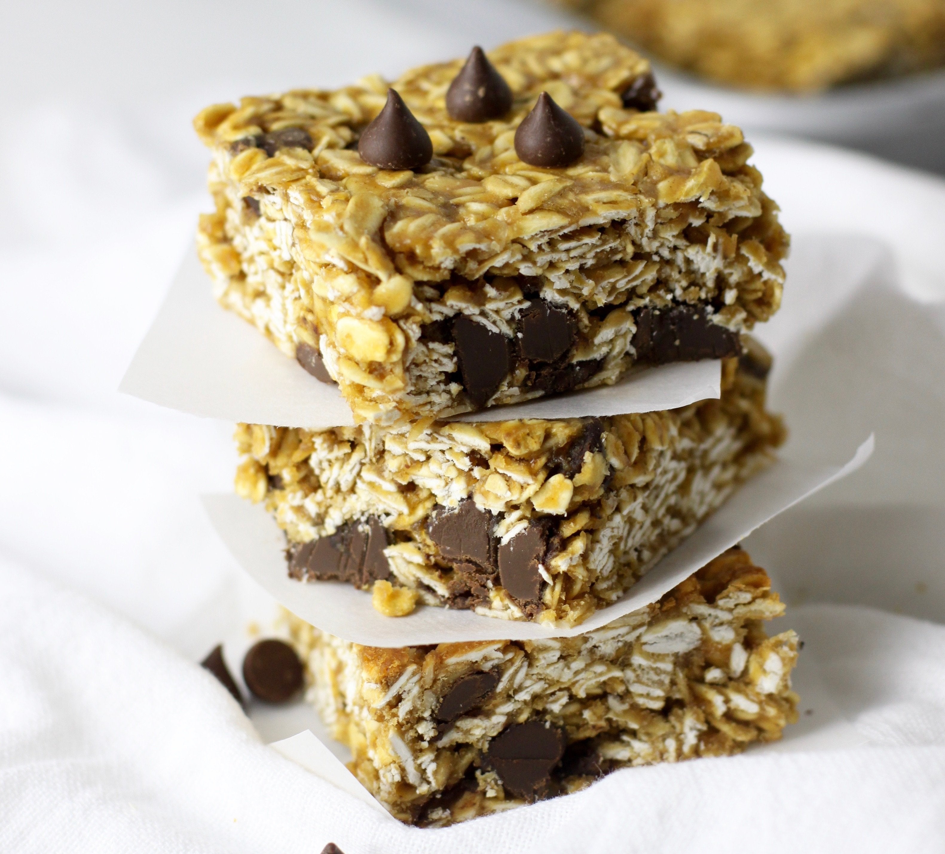 You’ll never need to (or want to) buy a box of granola bars again! These chewy bars are a breeze to make and a perfect afternoon treat or lunchbox addition for kids and adults alike. Feel free to substitute your favorite dried fruits in for the chocolate chips, if desired.