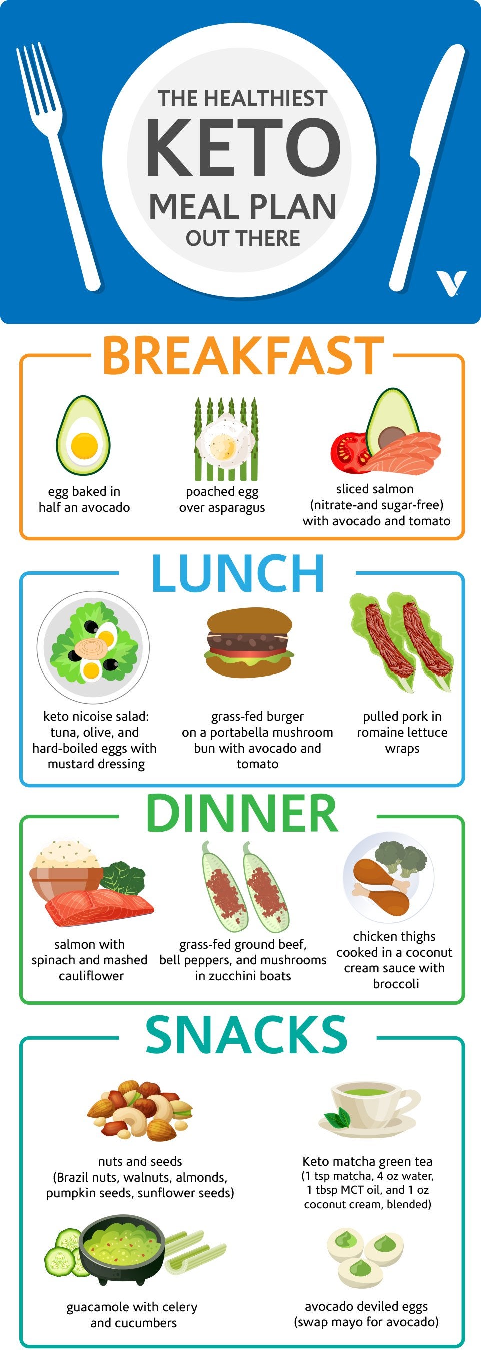 That’s why she put together a keto meal plan that’s chock-full of the good stuff, including low-carb vegetables, vitamins, minerals, fiber, omega-3s, and plenty of greens—in addition to all of the healthy fats you could ever want. Adjust the portion sizes to meet your needs, and you’re good to go!