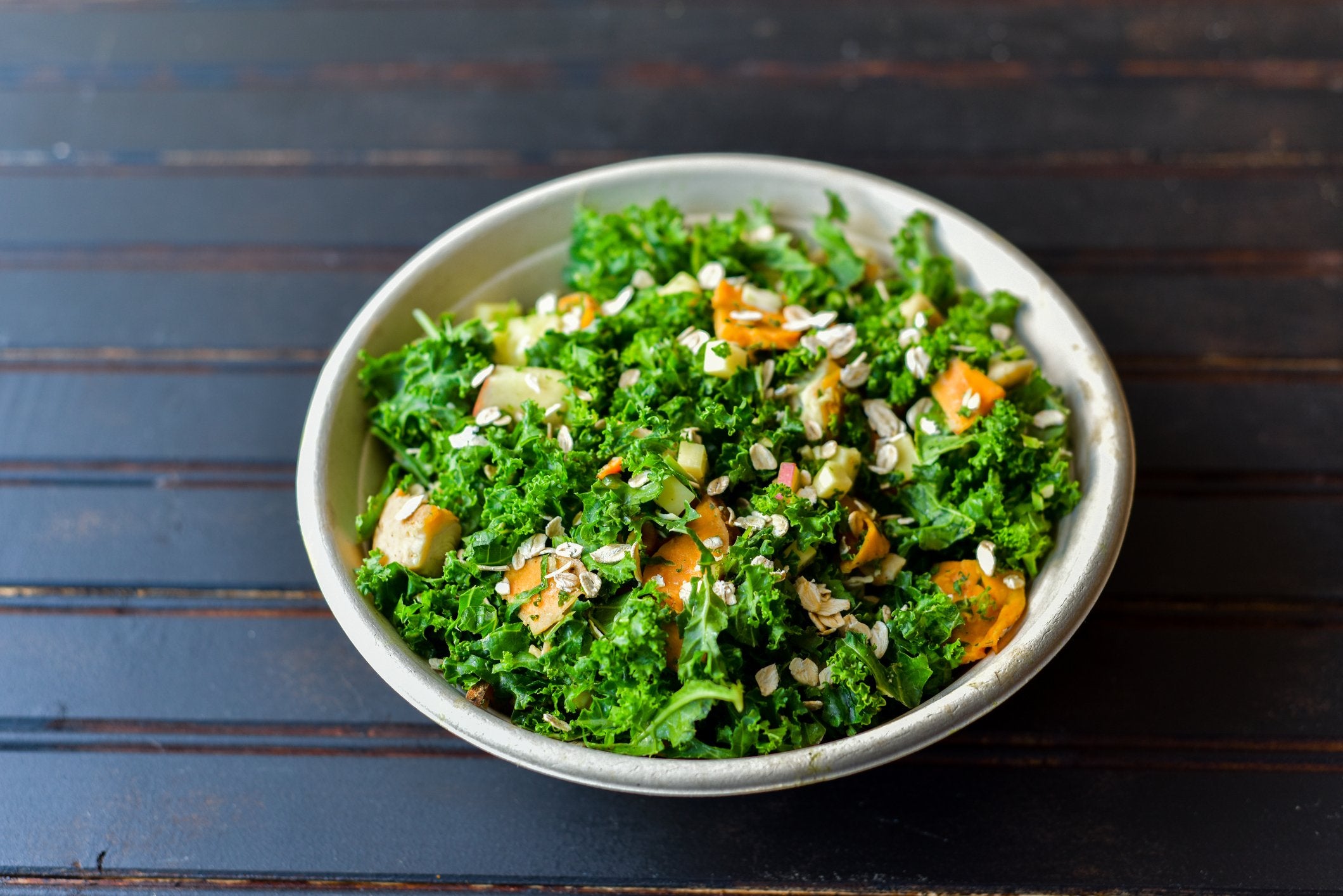 Preheat your oven to 450 degrees. Massage chopped kale with a bit of olive oil, toss with cubed sweet potatoes, and spread onto a baking sheet. Season the chicken with salt, pepper, and lemon, and add to the baking sheet. Bake for 30 to 35 minutes, or until your meat thermometer reads 165 degrees, and serve. “This dish is super quick and provides great protein and tons of flavorful fiber,” says Alpert.
