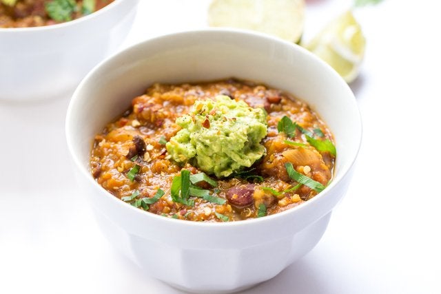 In the mood for healthy comfort food? Shapiro loves this pumpkin quinoa chili recipe from Super Healthy Kids. Quinoa, pumpkin, beans, and loads of spices come together for a unique, low-calorie twist on the often-indulgent meal. “It is loaded with protein, fiber, iron, and B vitamins,” Shapiro says. Score!