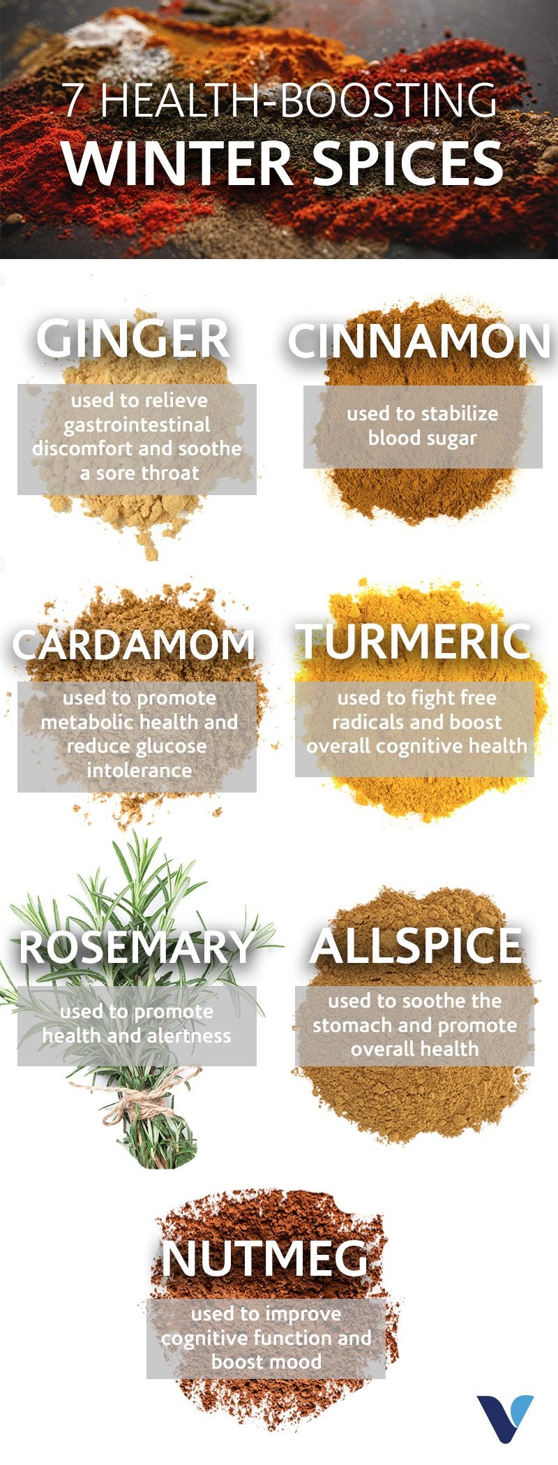 From sipping a pumpkin latte to grating ginger into a warm pot of chili, many time-honored cold-weather activities involve noshing on comfort foods, especially those flavored with delicious spices. But these spices aren’t just about pleasing your palate. Many of them boast wellness benefits, as well.