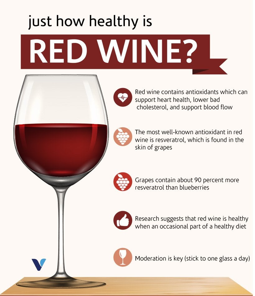 Moderation is key, as it is with the rest of your diet, says Hurt. And if you’re looking for heart-health benefits, the Mediterranean diet (yes, with vino) is your best bet at reducing your risk of heart attack and stroke risk, he says.