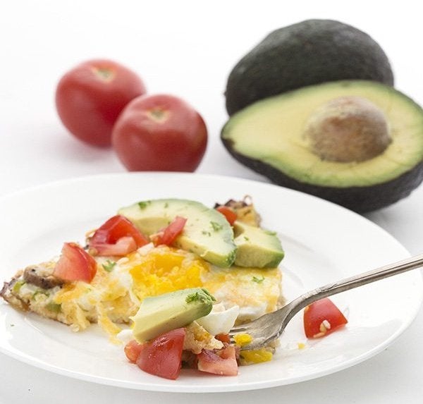 This breakfast casserole by I Breathe I’m Hungry packs all of the delicious flavors of a Monte Cristo sandwich (a ham and cheese sandwich dipped in French toast batter, fried, and served with syrup) without the carbs. The recipe layers cream cheese keto pancakes, Canadian bacon, and cheese, and is served warm with sugar-free syrup. Sounds like ooey-gooey perfection, doesn’t it? One serving provides 32 grams of protein and just 4.5 grams of net carbs.
