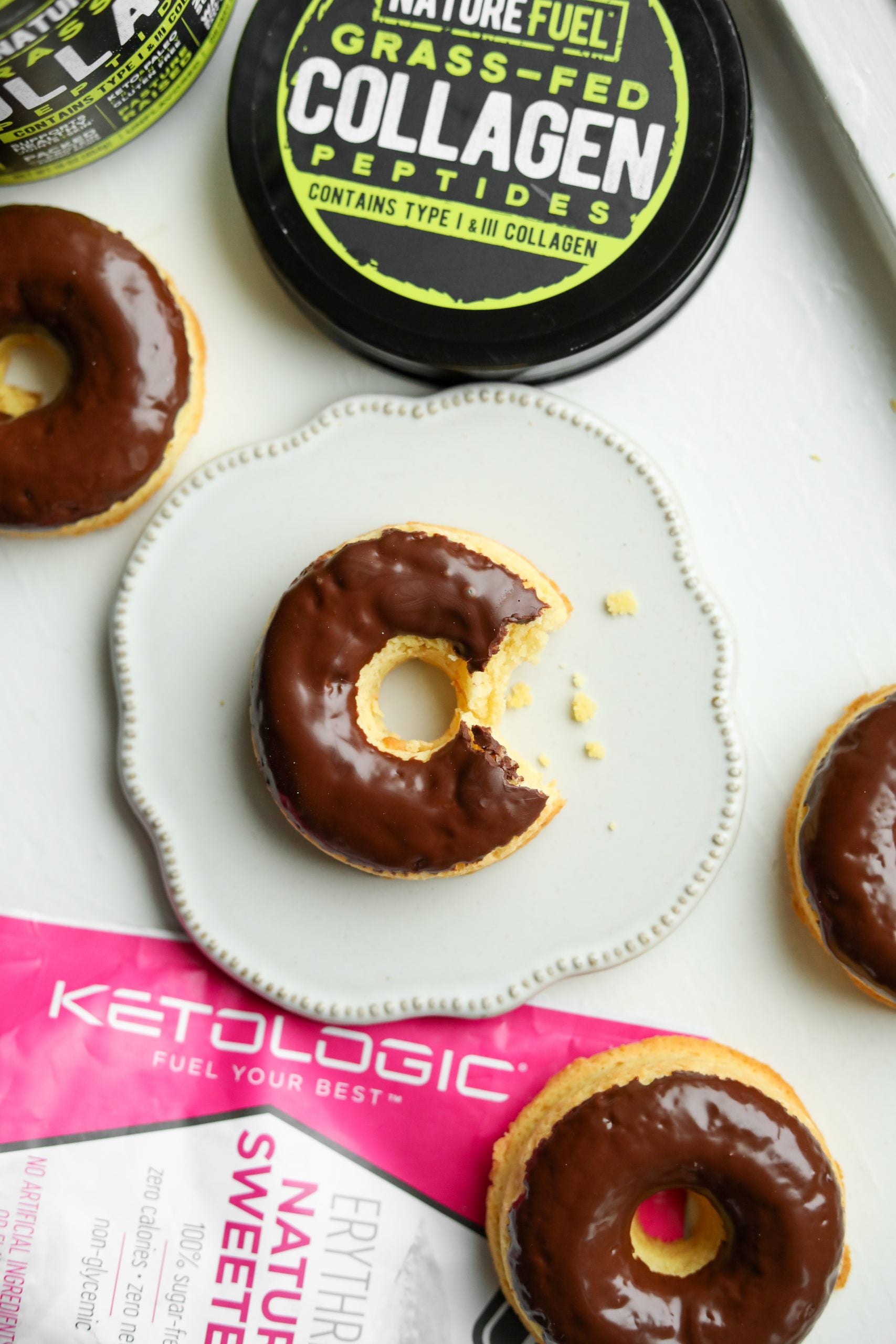 A donut with only 3 net carbs? Count. Us. In. This Keto Chocolate Glaze Vanilla Donut is made with Nature Fuel Collagen and Ketologic Erythritol, plus a blend of almond and coconut flours, for the perfect keto treat.