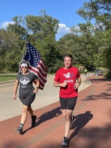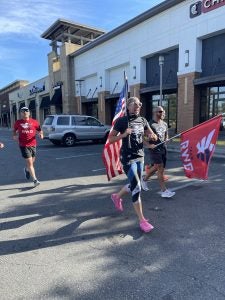 For Erin, the day had special meaning, as military service is a long and proud family tradition. She called running with the flag in the Old Glory Relay “one of the highlight moments of my life.”