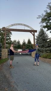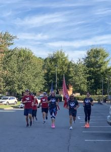 Old Glory Relay runners reaching The Vitamin Shoppe distribution center in Ashland, VA after running the flag for 44 miles.