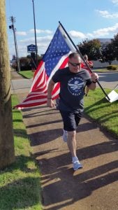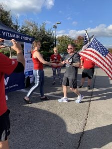 Dan Bristol, District Sales Manager, running the flag into The Vitamin Shoppe pit stop in memory of his son, Spencer, who served in the U.S. Navy for five years as a medical corpsman. He said, “The Old Glory Relay hits home for me, having a son who served and fought for our country, as well as multiple family members who served.” Read more about Dan’s story below.