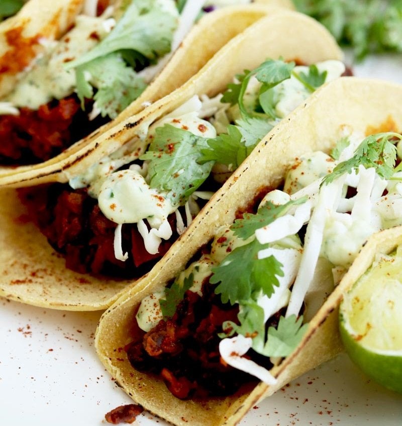 4. Vegan Black Bean Tacos With Avocado Cilantro Lime Sauce