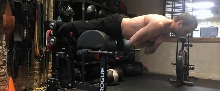 How to do it: Set up a hyperextension bench so that your hips rest right at the edge of the pad. Hold your torso straight out and level, engaging your muscles to maintain a neutral spine, without arching or rounding in your lower back.