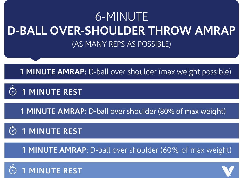 Chucking a big, heavy ball up and over your shoulder fires up most of your major muscle groups while making you feel like you’re rescuing people trapped in a rock slide. Nief likes performing these with a D-ball, which is filled with sand and a bit softer than a medicine ball.