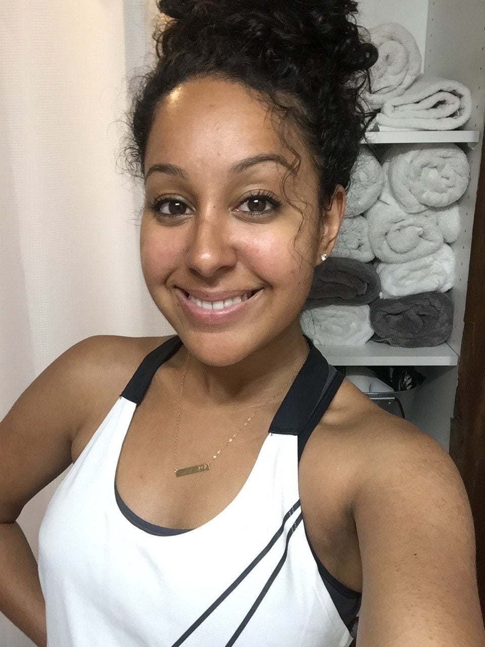 I wanted my body to have all the fluids it needed to work up as much of a sweat as possible, so I drank tons of water in the morning before my first workout—and another glassful right before. I felt pretty exhausted throughout that HIIT session. My muscles were really feeling the burn! I know I worked really hard, but if we judged my workout based on sweatiness, it looked like I didn’t do too much. Sweat level: 3.