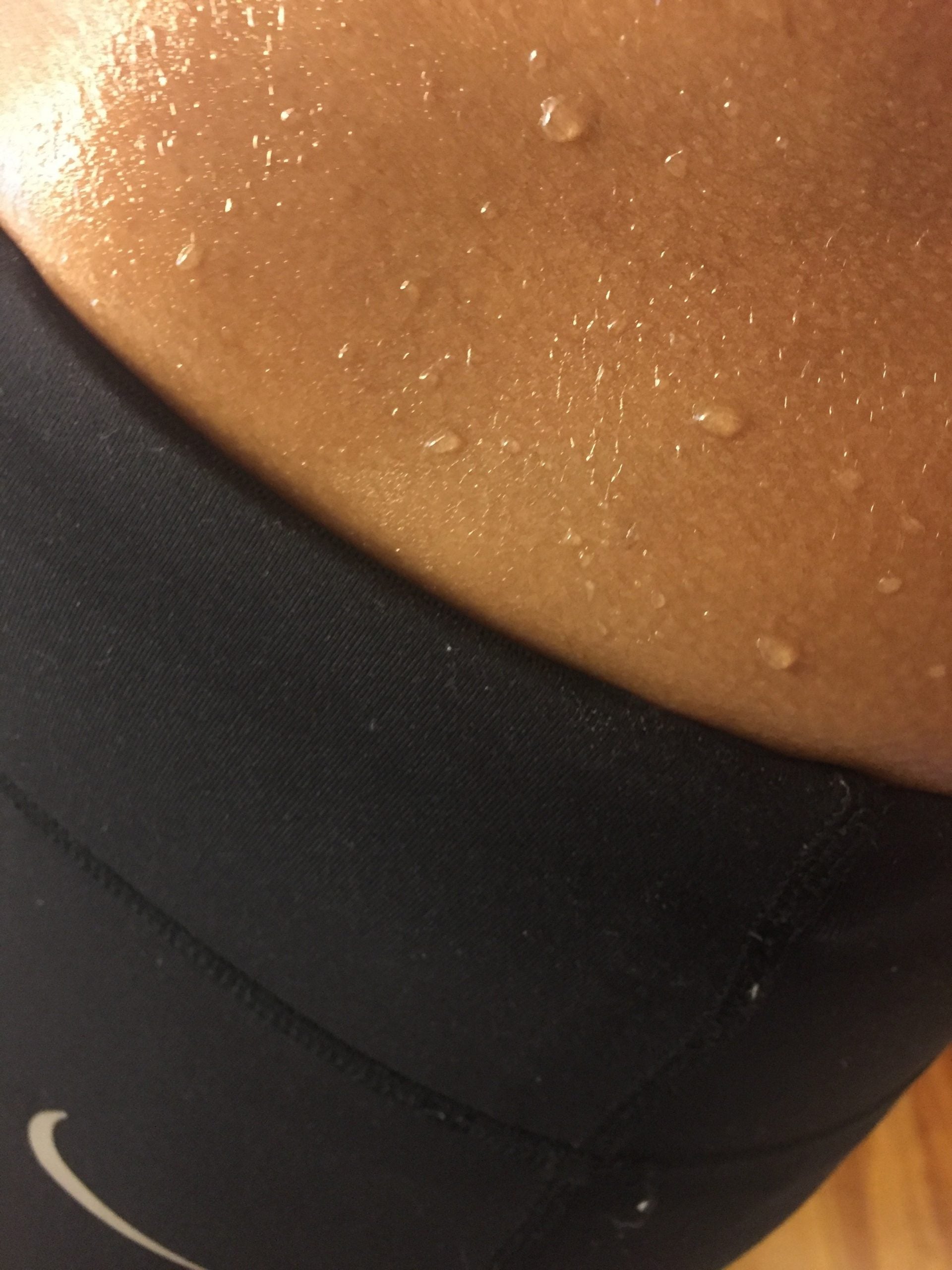 When I finished the workout, I couldn’t wait to take off the waistband—I could feel the sweat building up in there. My arms and legs still weren’t too sweaty, except for in and around the creases around my joints. But beneath that waistband…Waterworks! Sweatfest! Glorious evidence of my hard work! Sweet, sweet SWEAT. Sweat level: 8.