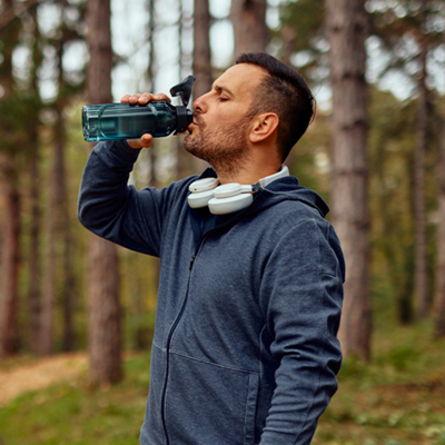 man drinking from shaker cup