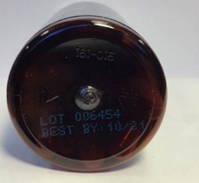 Locate the lot number on the bottom of the bottle. The lot number 8102351 the only lot included in the recall.